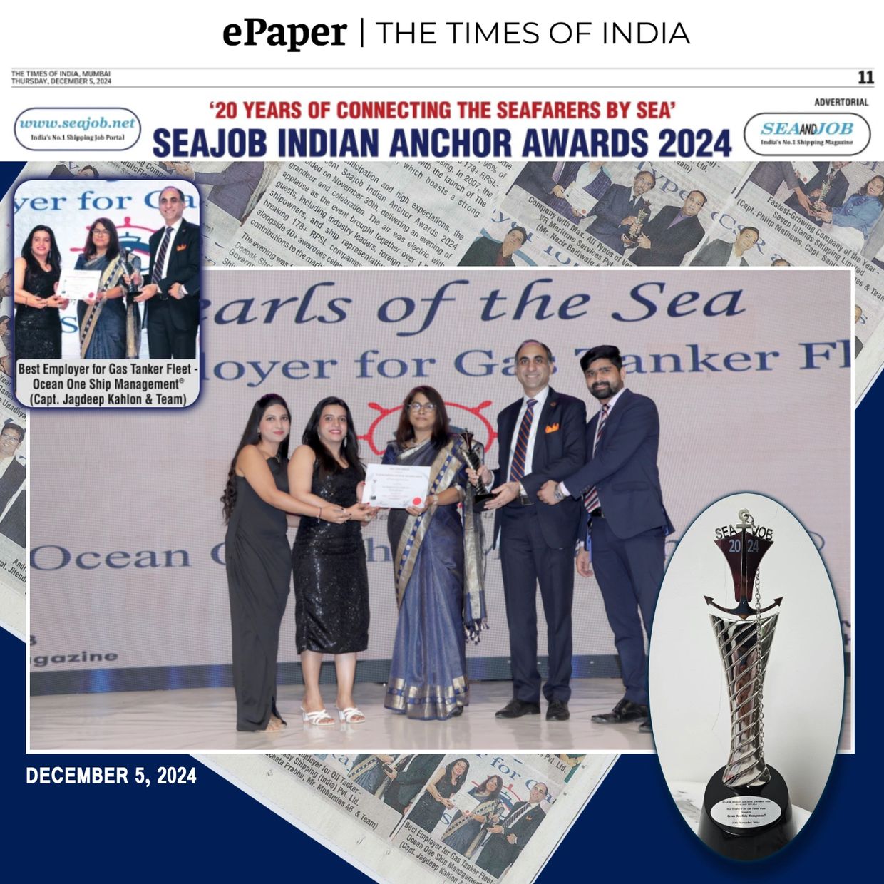 2nd Time winner of the Best Employer Gas Tanker Fleet of Seajob Indian Anchor Awards 2024